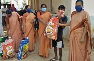 Marreddy und sein Team fanden Supermärkte (in der Zwischenzeit wurden Lebensmittel kontigentiert), bei denen sie noch große Mengen für unsere Aktion einkaufen konnte. 1200 solcher Pakete wurden geschnürt und von Marreddy und den Ordensschwestern verteilt. Ein Paket enthielt 10 kg Reis, Linsen, Gewürze, Salz, Kokosnusspulver, 1 Liter Speiseöl und Hygieneartikel im Wert von 10 Euros. Die wurden dann im Slumgebiet von Nandyal und in den Dörfern rings um Nandyal verteilt. Die Dorfältesten suchten die ärmsten Familien aus und unter Polizeischutz wurden die Überlebenspakete verteilt. Das half den Familien einige Zeit über die Runden zu kommen. Ich habe Bilder von den Verteilungsaktionen und von der aktuellen Not in Rundmails an unsere Spender versandt, von denen ich Mailadressen hatte. Dabei erfuhren wir eine große Solidarität und Hilfe, sodass wir die Aktionen in vielen Dörfern machen konnten.