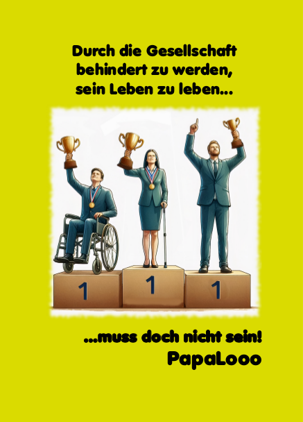 Dieses Büchlein zeit, dass Menschen mit Einschränkungen erst durch Barrieren und fehlende Rücksicht der Gesellschaft behindert werden, ihr Leben leben zu dürfen.